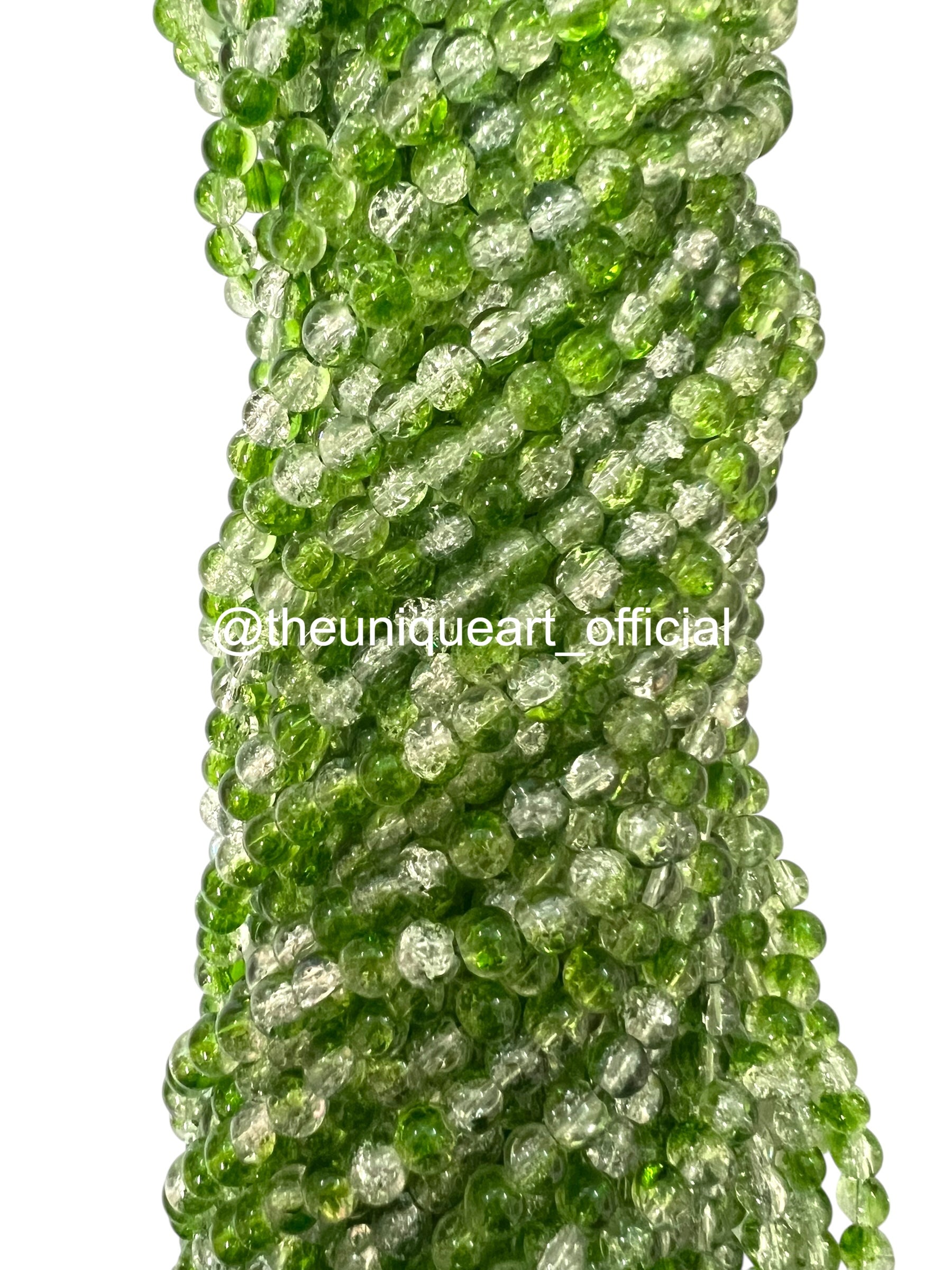 Light Mehendi Green Crackle Glass Beads 8mm